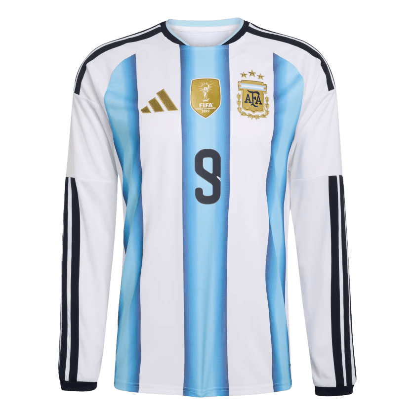 Representing Argentina on the world stage, this jersey now comes with “Álvarez 9” printed on the back. Letting you carry the same name and number as one of the national team’s most dynamic forwards. It’s more than a jersey; it’s a tribute to the player and the team.
